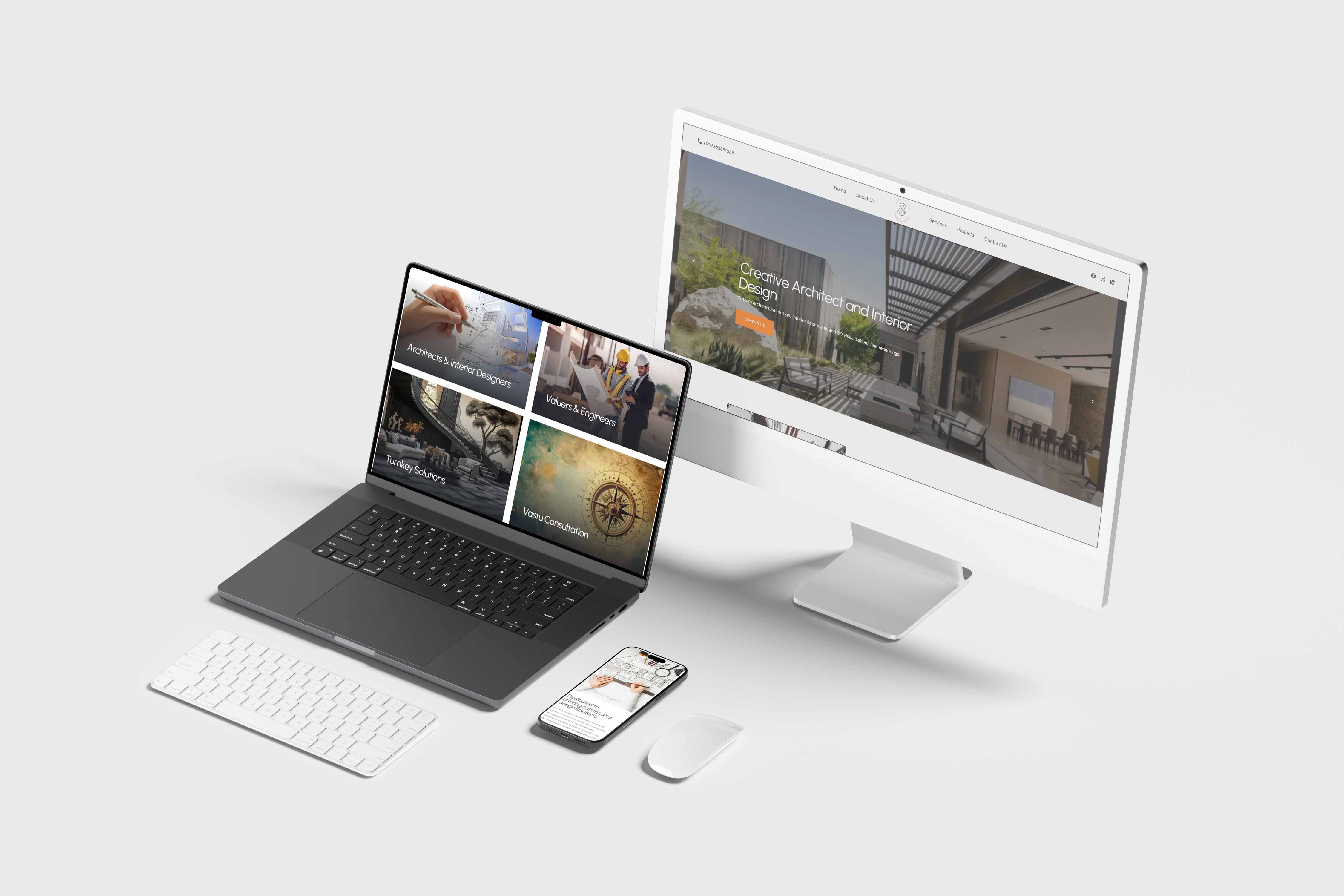 Architecture and interior design website showcasing professional services and integrated solutions.